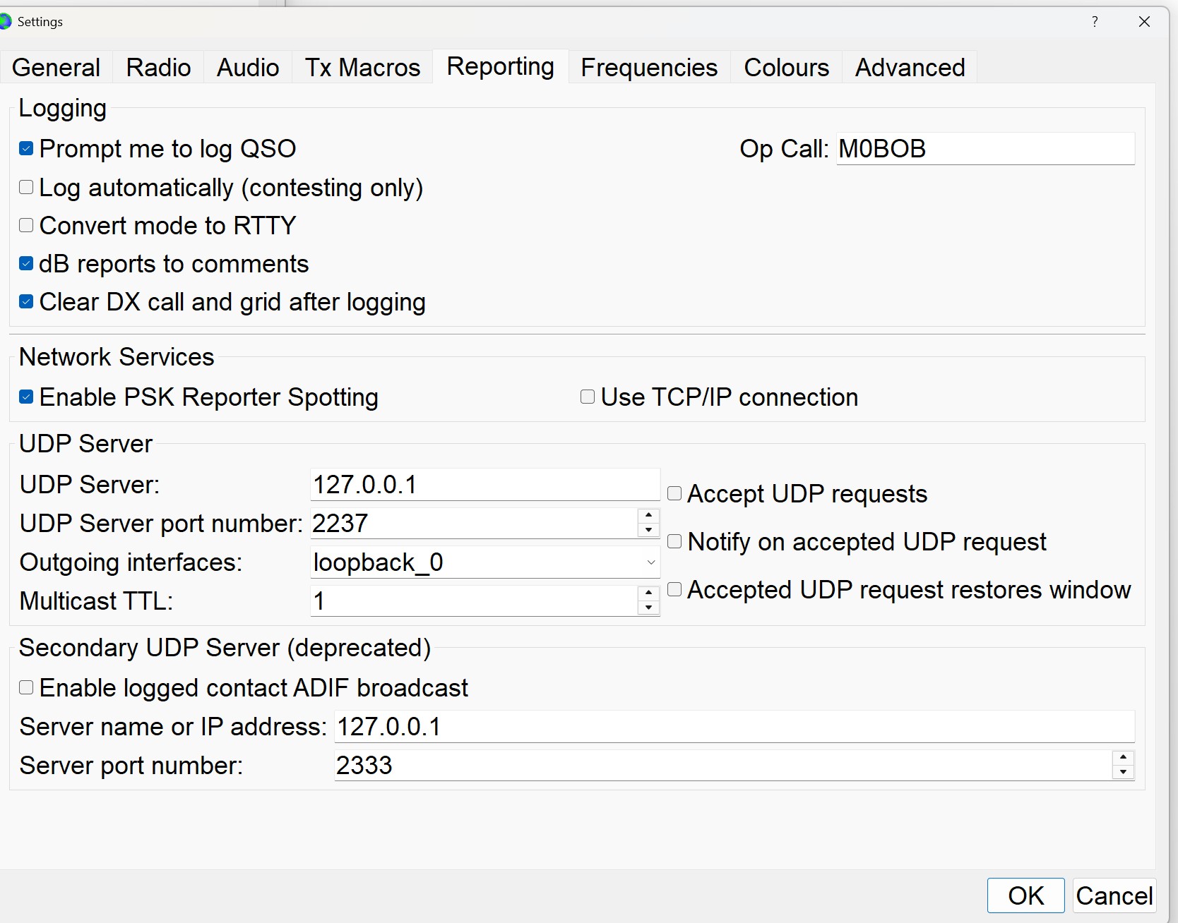 @M0BOB We’ve been having some reports of users having trouble. it seems like most the users that are having issues are just using the cat control app to listen for UDP connections and only using WSJTX (with no other apps involved) so I just tested this with just those two and was able to make it work with the following settings (listed below). I normally use the cat control app connected via cat control to my radio, then have WSTJX or JTDX connected to the cat control app via the hamlib setting in the radio settings tab of WSJTX/JTDX and then WSTJX/JTDX sends the QSO info to gridtracker and then gridtracker sends the QSO logging data to my WRL logbook, so i normally use it a little differently, however with that said i tried it with just the cat control app listening and tied to WSJTX specifically.